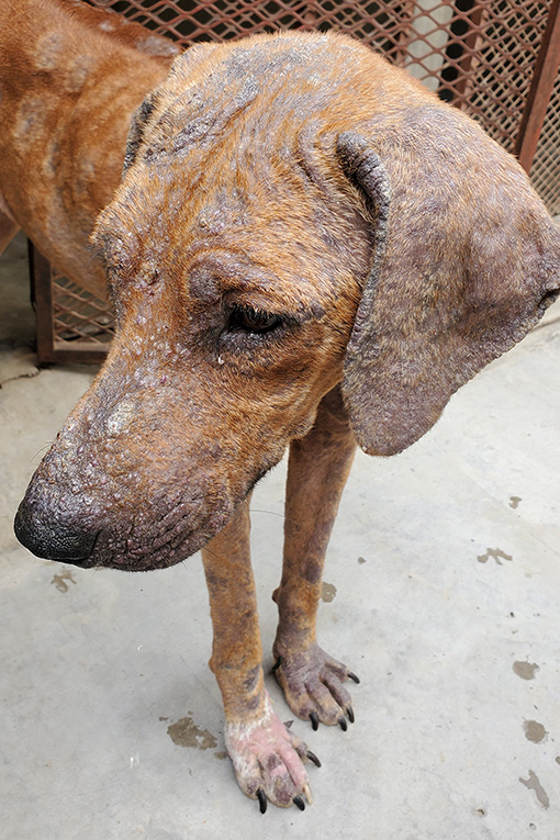 In January we got a message that a Ridgeback female had been found by the SPCA in Waterfalls in southern Harare. She was not in good shape but we decided that as she was young she might make a good friend for Themba as Tia is finding him a bit rough to play with (she’s not a young dog any longer). So we booked and appointment and went to meet her at the SPCA hospital on the airport road where she was being treated.