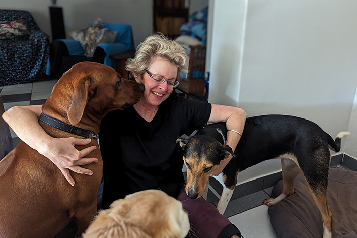 Now of course we have Greeta, the SPCA office dog who liked to greet everyone. She has fitted in really well but is quite a bit older than what we were led to believe and hasn’t ended up being the play companion for Themba that we’d hoped she would be be. We do have to be careful not to leave food close to the side of the counter though. She does have some big scars from the past – who knows what stories she could tell? She bears no grudges and is a pleasant soul.