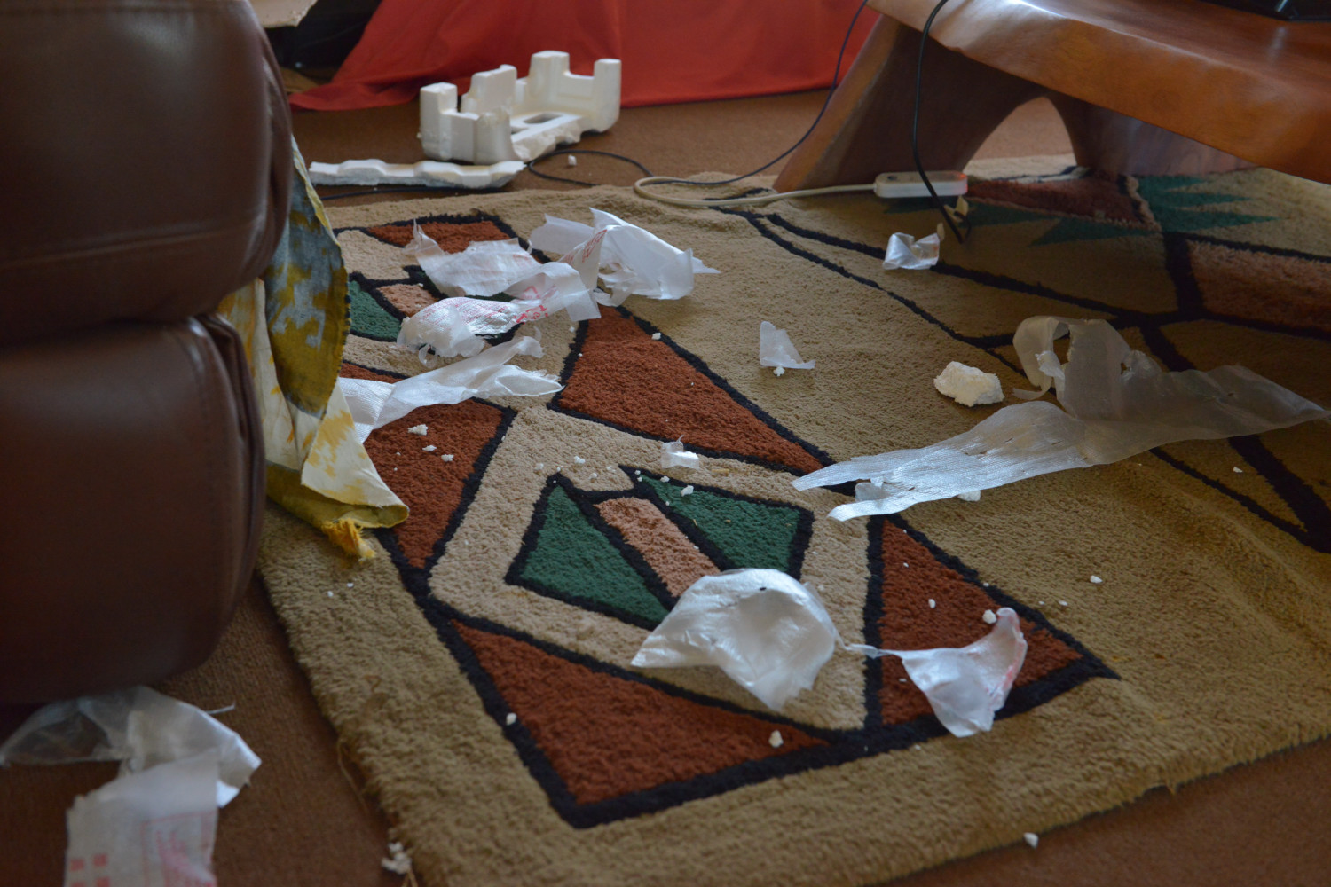 As a parent of doggy children I’ve learnt to identify the various puppy sounds. The excited, let’s play bark. The frustrated I want your bone bark replied by a don’t get too close to my bone growl. The clatter of the broom being dragged from the cupboard (sacrifice it in the name of minimal damage). The crack and pop of my ventolin inhaler cap being destroyed; requires limited intervention to rescue the cartridge. But the real damage is done during periods of silence. This is the witching hour sometime between 6 a.m. and 7 a.m.