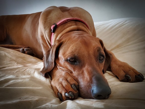The training has started in earnest and we are making progress. He’s not so keen on the walking on a leash but will recall to a treat quite successfully and has learnt to sit and lie down. Fetching has never been a strong instinct for ridgebacks but Themba will give it a go if he’s fetching a treat.