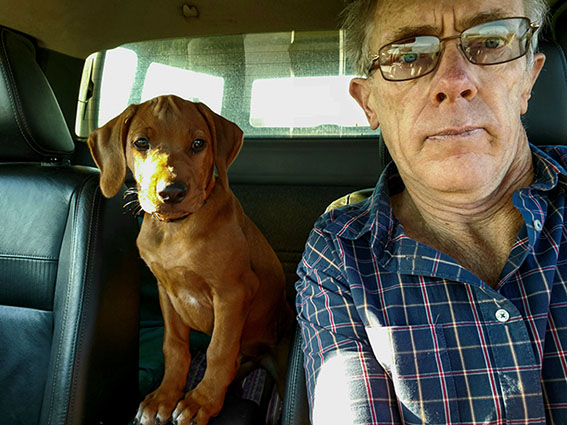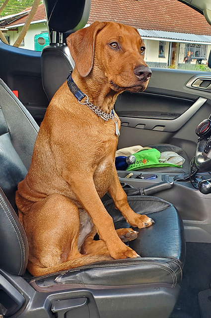I took Themba to work with me this afternoon. On the way back through ART Farm I let him out of the truck for a run. He’s not the runner you were my boy, loping along behind the truck in all the dust so I got him to jump back in after a short while which he did with indecent haste!